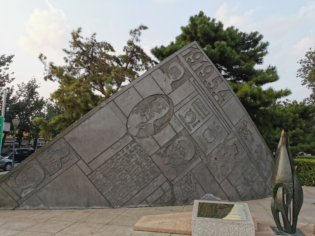 北河沿大街与五四大街路口竖有五四运动纪念碑,提醒人们回望发生在1919年一百年多前几乎席卷全国主要大城市的那场伟大的学生爱国运动;而这里沿着五四大街稍往西走到北京新文化运动纪念馆—也是当年五四运动的发源地“北京大学红楼”。