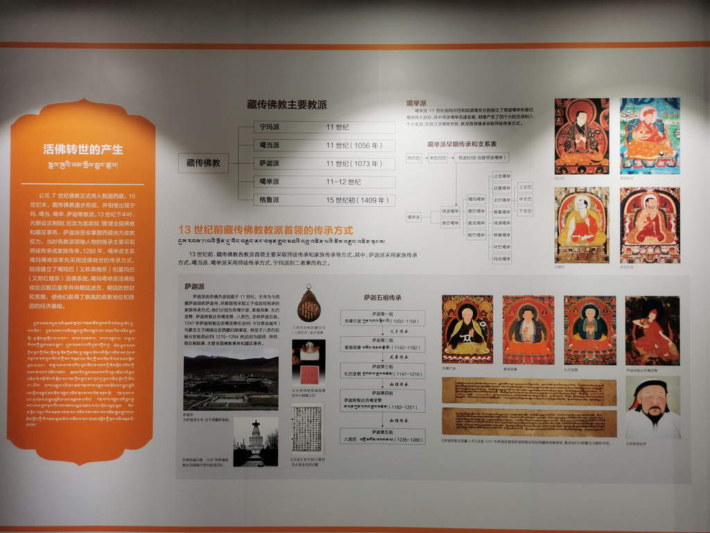 西黄寺为京城另外一处重要藏传佛教寺庙,作为达赖五世的驻锡之所而始建于顺治年间,故又称达赖庙;因为班禅六世在寺中圆寂,清高宗敕建清净化城塔以为纪念,塔内葬有班禅六世衣冠经咒,故此塔又称班禅塔。中国藏语系高级佛学院亦建在西黄寺,十世班禅是第一任院长…由此等等可见西黄寺在藏传佛教寺庙中之地位尊崇,但相较雍和宫游客甚少,反而益显自在宁静…藏传佛教活佛转世专题展图文介绍了始于公元13世纪发展至今形成的系统、完整的藏传佛教活佛转世制度…