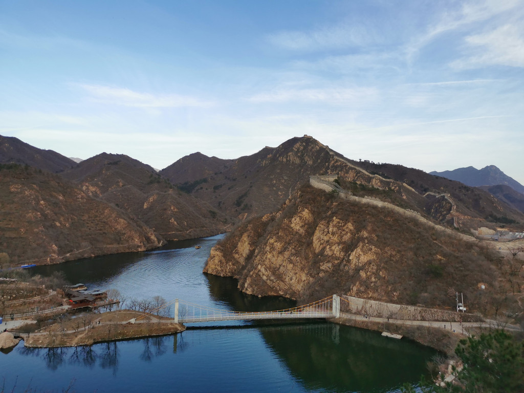 黄花城水长城,位于怀柔,建于明永乐年间;长城下今天还留有百亩明代板栗园…后因下游筑水坝截流,蓄水形成水库,水位高起时部分长城湮没于水下。冬日午后三四点西斜的阳光撒在绵延的山峦上,弥散着温暖的橙色,空阔的蓝天碧水间,山脊上金色的长城蜿蜒起伏消失在山岭远处无尽处…