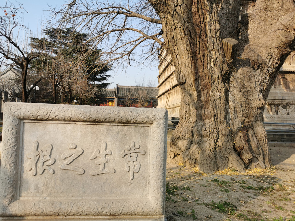 真觉寺,明朝永乐初年间敕建藏传佛教寺院,现为北京石刻艺术博物馆,即五塔寺,因寺内金刚宝座塔闻名。印度僧人班迪达自西域来京向明成祖朱棣呈献了五尊金佛和印度佛陀伽耶塔—位于佛陀毕钵罗树下跏趺正觉得道之圣地即金刚宝座的规式,明成祖乃为其建寺并修建金刚宝座塔,后寺院毁废而塔和塔前两株银杏保存至今。金刚宝座塔建造内砖外石,周匝筑佛龛、雕佛像,近600年积淀了风蚀雨淋日晒,通体宽仁厚重一如往昔,只是多了岁月历史沧桑,就这样在眼前…