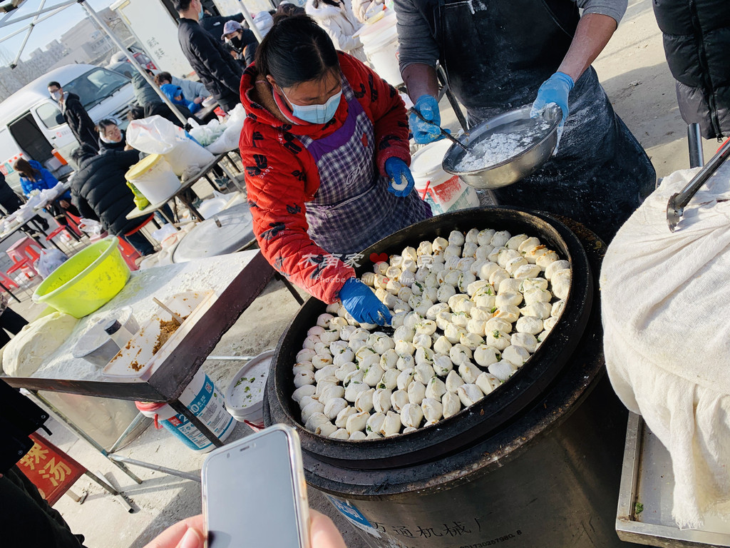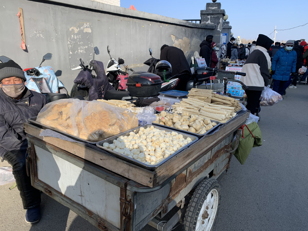 小吃集中在东北角,刮风下雪都是一派热气腾腾,成为冬日里赶集的食客们暖身子的歇脚点儿。