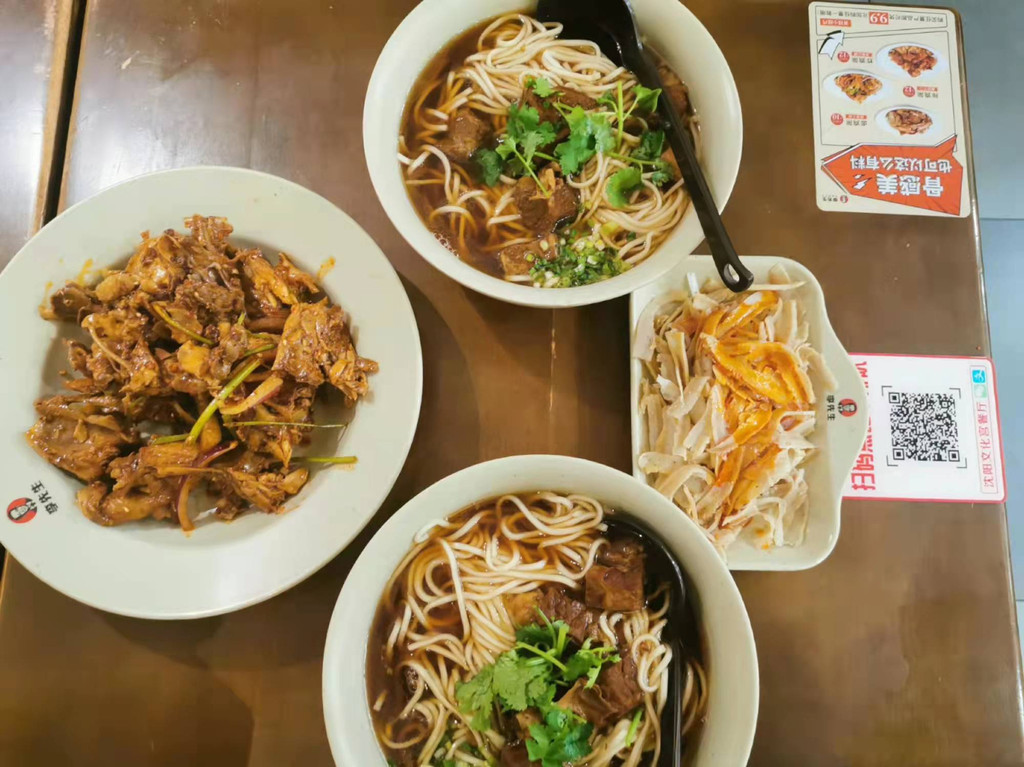 终于可以下车撒欢了。儿子一下车就说饿了。可不是吗,早上走得急孩子没来得及吃几口饭,而且现在也快中午了,正是饭点。别说八达岭美食一条街正是通往景区的必经之路,好吃的东西还真不少,中餐西餐都有。儿子喜欢吃牛肉面,店家听说我们是巴士达的客人,还贴心的给了折扣价,太赞了。我俩饱餐了一顿后开始正式爬长城 当好汉~