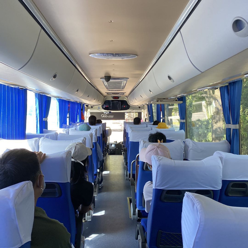 出了地铁站就看到了穿着绿色马甲的导游。她很热情的和我们打了招呼核对了信息后我俩顺利登车。大巴车挺干净的。其他人也挺准时的,真是做到了准点出发。不像我们那年去外地旅游报的一日游团,大巴车去接这个去接那个,还有不少人迟到,我们在车上干等,窝了一肚子火。我们6点班上车,8点多了人还没到齐,真是气死人了 。像巴士达这种自行集合,到点发车的,真是省事多了。