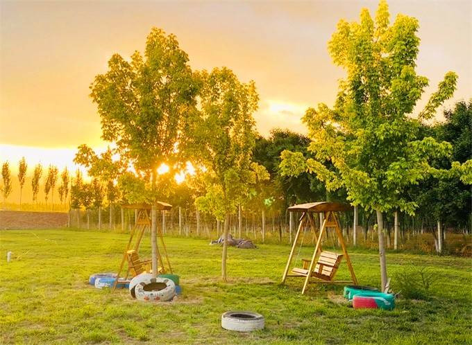 小院内有小菜园,种植绿色有机的新鲜蔬菜,可以提供游客是食用,或者带娃采摘,让孩子体验农民伯伯的辛苦,不要浪费粮食。庭院内还有秋千,赏观鱼池,享受自然带来的舒服与亲切,享受这份清幽与恬静。
