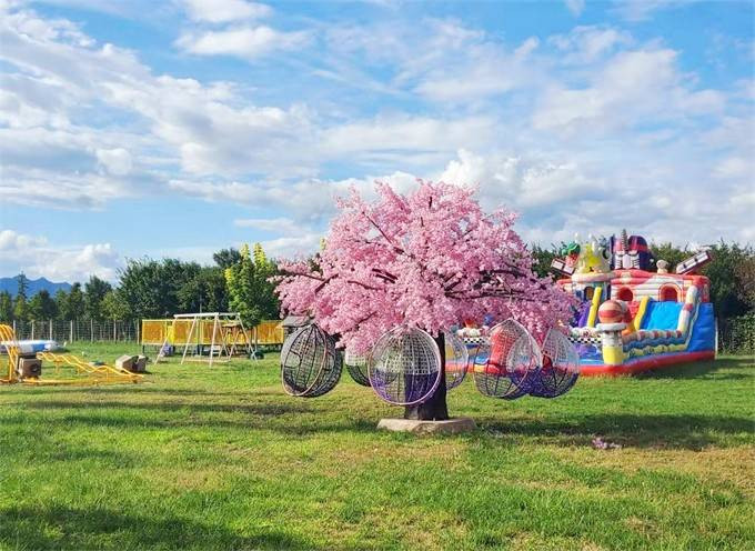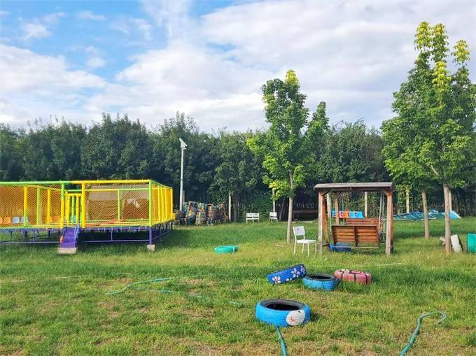 室外的超大蹦床,深受小朋友们的喜爱,足够安全的蹦床,可以满足各个年龄段的宝宝,这里的天空也是格外的蓝,带着孩子可以尽情呼吸着更清新自然的空气。