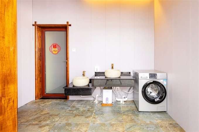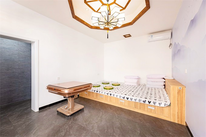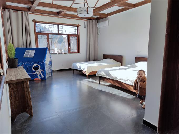 榻榻米房2间,房间内非常具有乡村风格,布局简约,洁净又温馨,配有麻将机,独立卫生间,洗衣机等,每一间房都有属于它自己的特色美景,每一扇窗都是一幅自然的风景画。房间大片落地玻璃窗将山色尽收眼底,配备了地暖的客房。