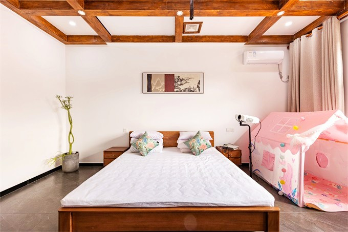 民宿客房型:大床房,双人床,亲子房,榻榻米,房间内有小朋友的帐篷,专业的录像设备,记录这一刻的美好,内部简约很舒服,白色木色相间的布置,宽阔的空间,无所顾忌的放空,亲子民宿就要丢掉烦恼!