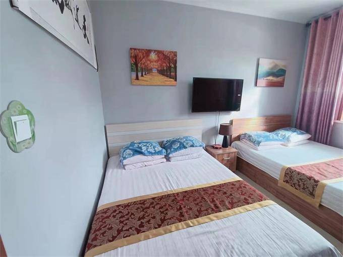每个客房根据面积格局不同来划分,因地取材,装修精良,温馨可人。