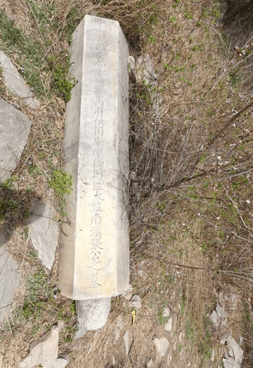 六棱石柱形的石碑,上刻有太监南溪张公之墓