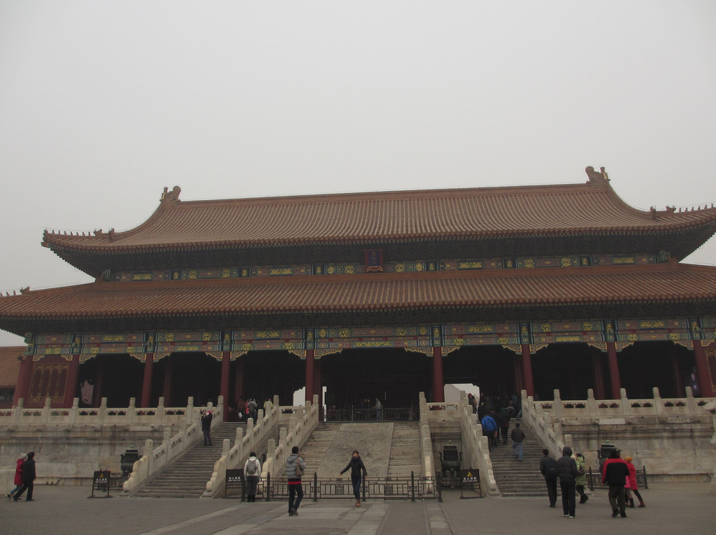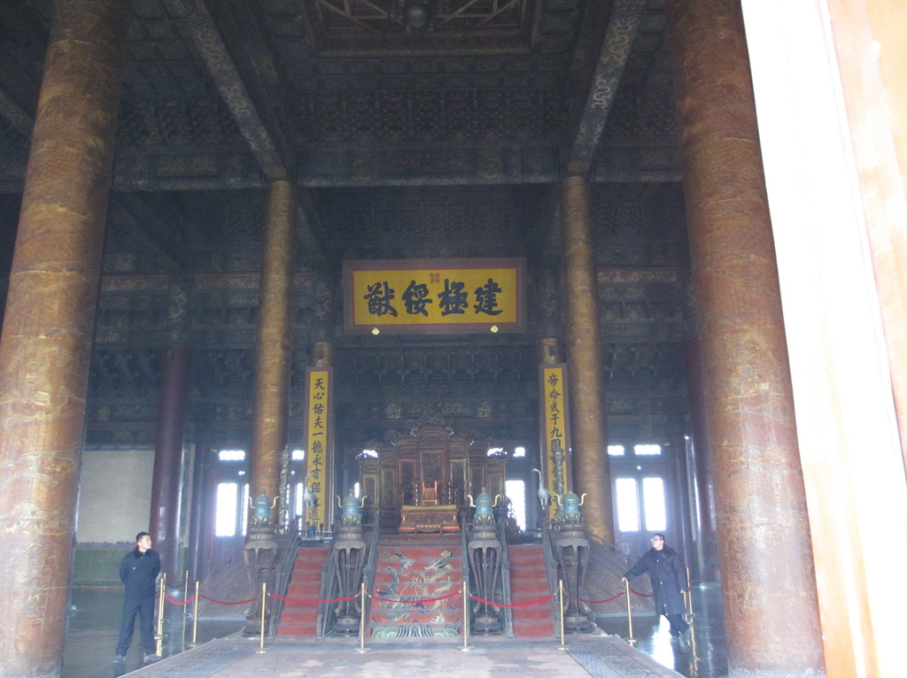 内廷以乾清宫、交泰殿、坤宁宫后三宫为中心,两翼为养心殿、东六宫、西六宫、斋宫、毓庆宫,后有御花园,是封建帝王与后妃居住、游玩之所,内廷东部的宁寿宫是当年乾隆皇帝退位后养老而修建,内廷西部有慈宁宫、寿安宫等,此外还有重华宫,北五所等建筑。在门口请了位讲解(讲解费150元)带着,沿中轴线参观故宫。