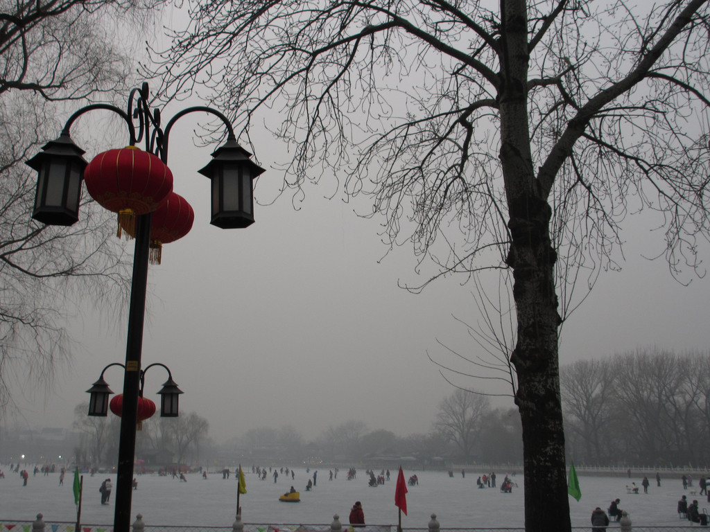 冬天的前海变身为一个大冰场,看见冰场,女儿忘记了之前的疲惫,忘记了寒冷,快乐地玩起了冰车,有了之前在天津的经验,女儿玩冰车的技术似乎更加熟练了。