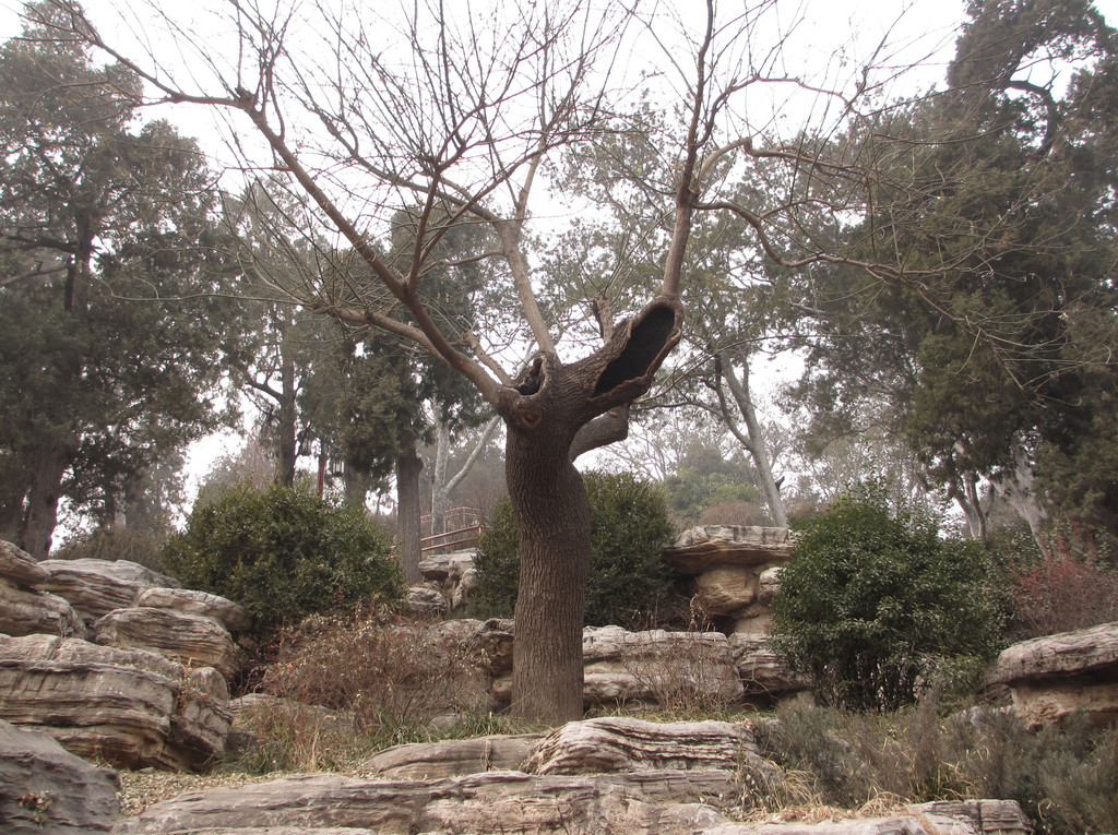 景山公园另一个为世人所熟知的地方是:景山是明朝末代皇帝崇祯皇帝上吊自杀的地方,一个供国人牢记历史教训的地方。