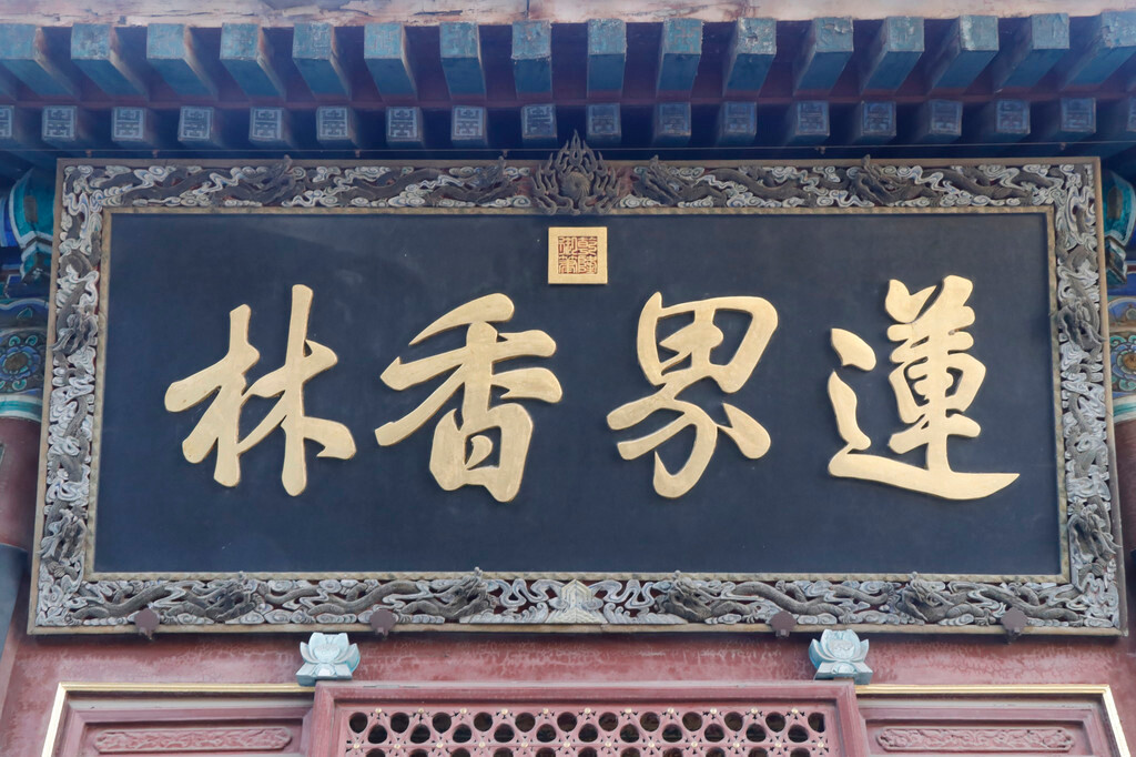 大雄宝殿门匾,乾隆手书“莲界香林”。