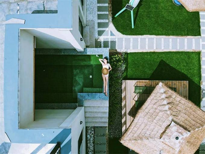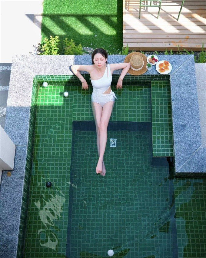 院内有秋千,温泉池,大人和小朋友可以肆意在泳池里撒欢儿,躺在泳池边上,远处的风轻轻拂过山峦的曲线,玩水玩累了,泳池边的小帐篷让你瞬间进入到舒适的休息状态。