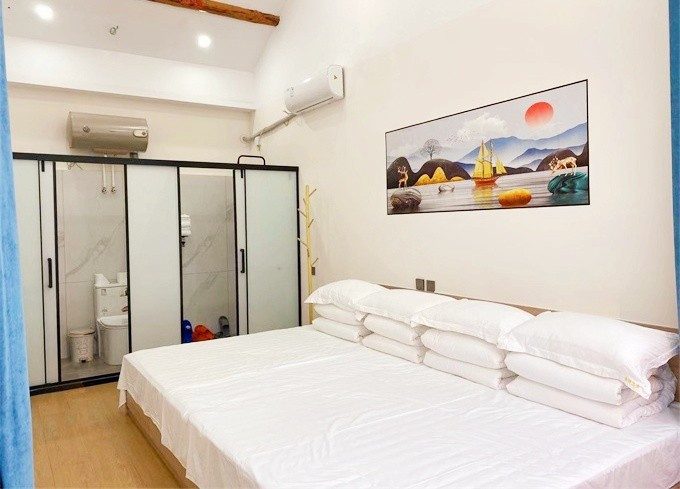 它适合年轻人的聚会,长长的榻榻米大通铺,能够睡开好几个人,墙体、洗手盆、毛巾等都是清一色的白色,没什么多余的装饰,温馨感满满,有兴趣的小伙伴儿可以去入住体验一下啦!