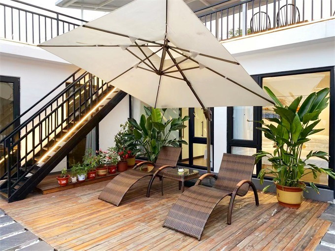 院子的二楼有大露台,可以饮酒洽谈,可以发呆听曲,这里白天蔚蓝澄澈,入夜后又星空璀璨,在院子内抬头便可看见长长的银河和漫天繁星,真的超级浪漫壮观…