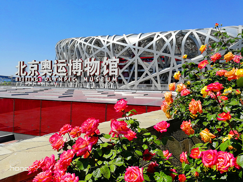 鸟巢(国家体育场)是2008年北京奥运会的主体育场,以其高端大气的外形与举办的众多国际比赛,成为北京近几年新地标之一。走近鸟巢,发现体育场外部由一根根钢柱像树枝般交错编织成“鸟巢”的形状,高低起伏的弧形线条使它看上去像律动的生命体,设计风格非常独特,建造的十分巧妙和精美,造型极具视觉冲击力,周围鲜花盛开,感觉很美!
