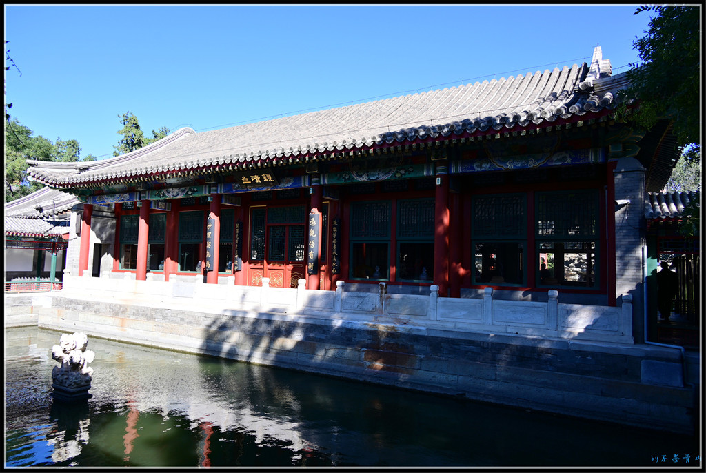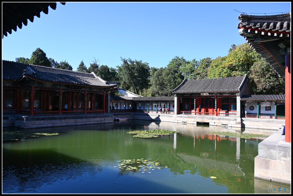 中间一方形水池,北为正殿-画舫斋。