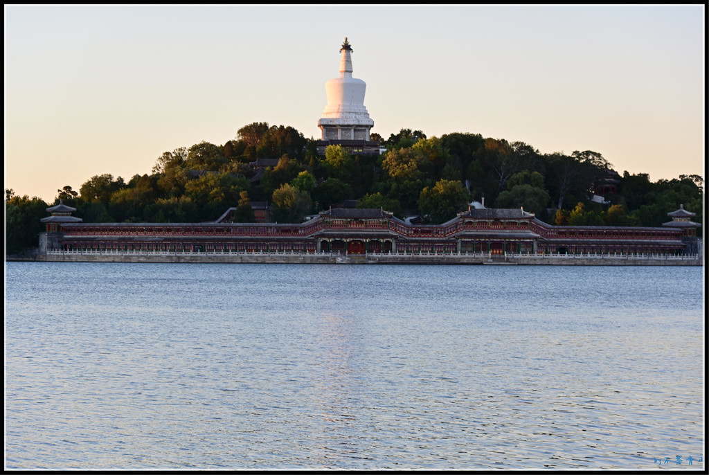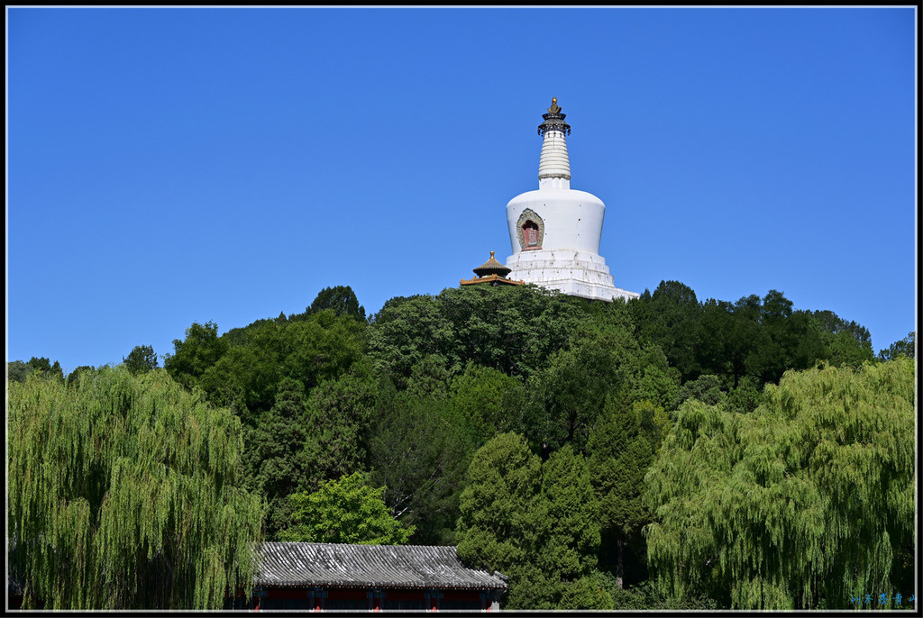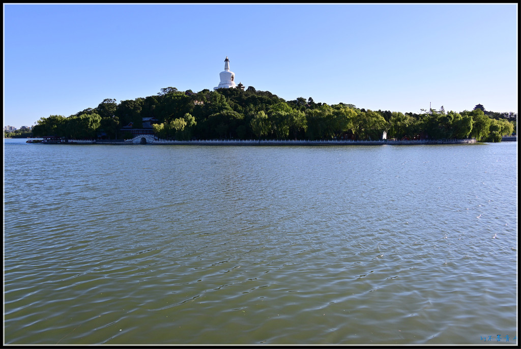 一泓碧水绕琼华,绿树阴浓映白塔。