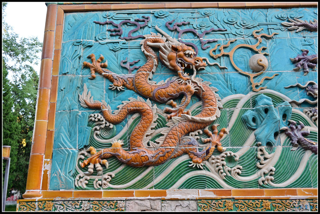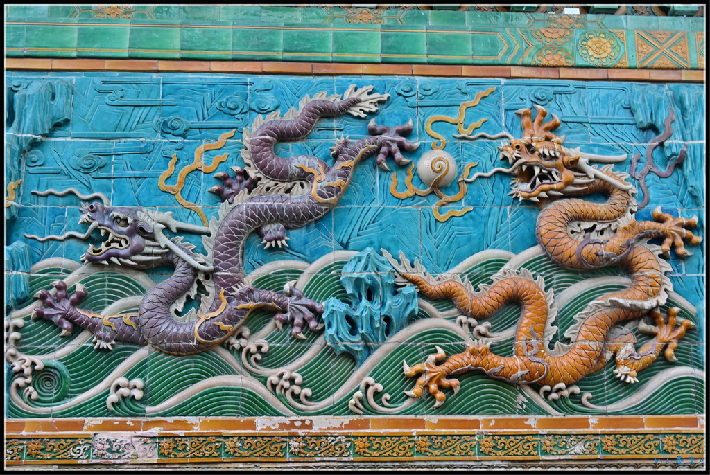 北海公园九龙壁,原是大园镜智宝殿山门-真谛门前的照壁。该庙在1900年被烧,虽又重修,但于1919年又失火,仅剩九龙壁。