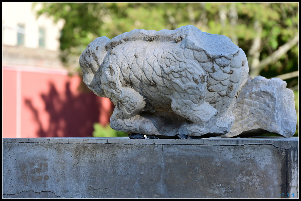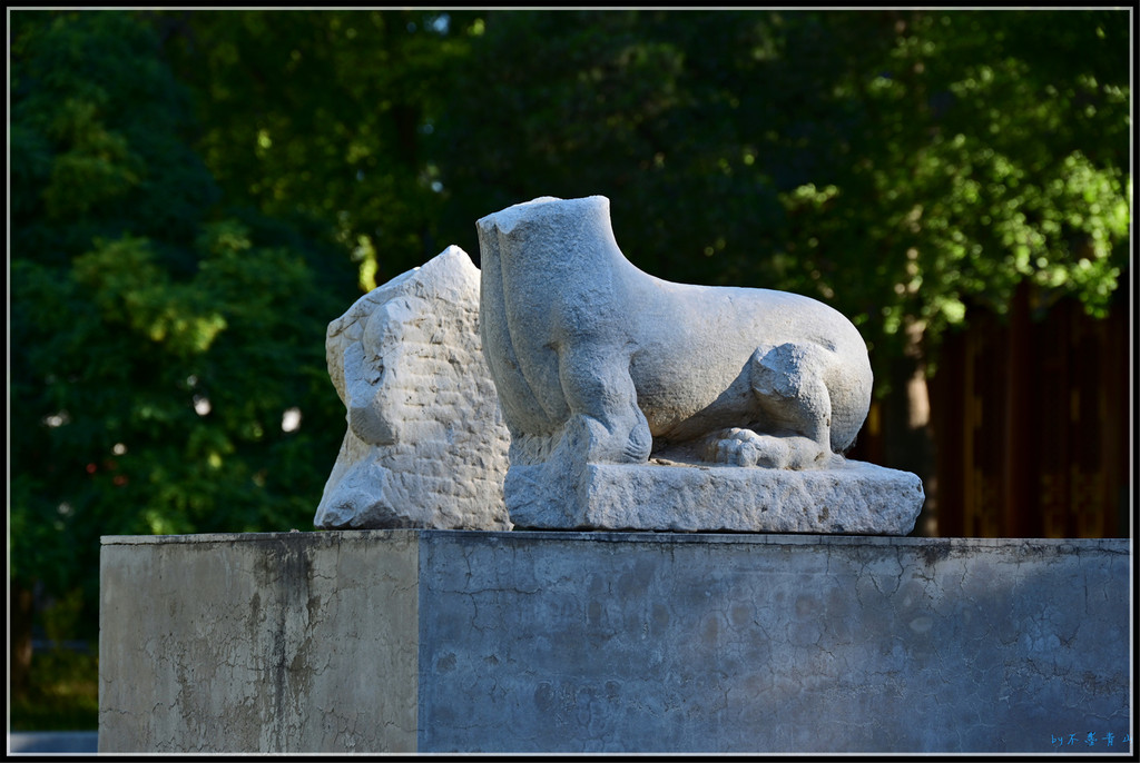 园内残缺的石兽、石像、石构件、柱础石随处可见。