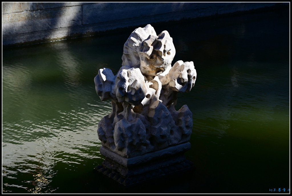 铁影壁前,水中五座亭子一字排开,曰五龙亭。