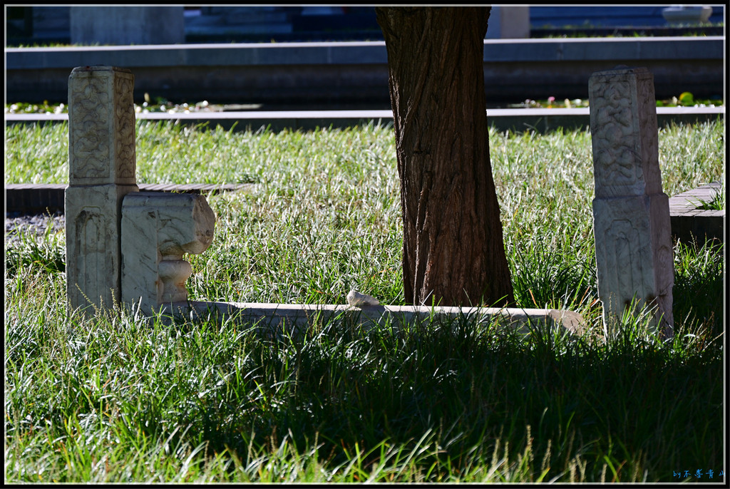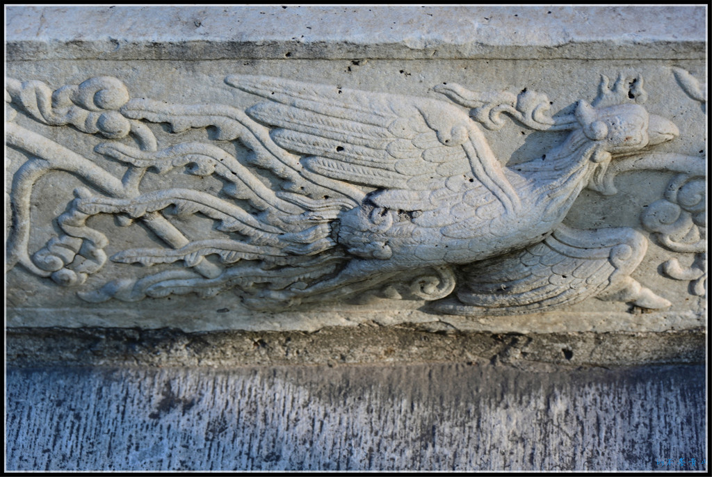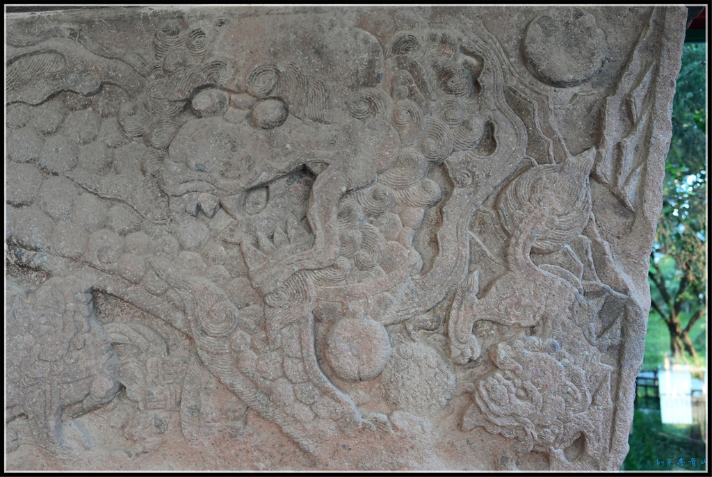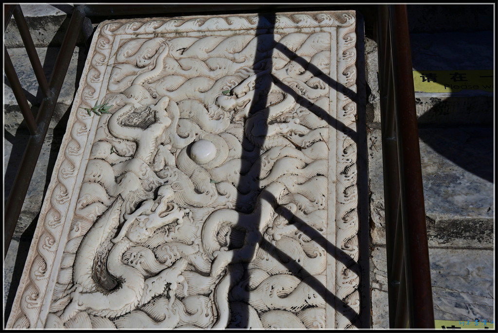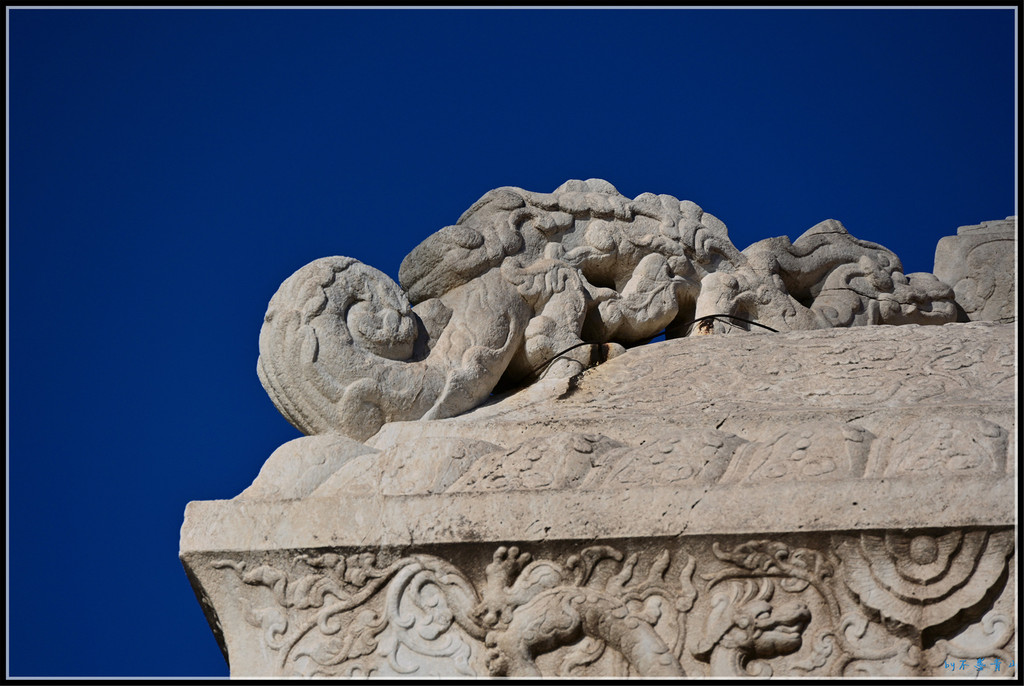 万佛楼没了,楼前的夹杆石还在。二龙戏珠的石雕有显著的乾隆时期的特点,五爪足,姿态飞动,雕工细腻。