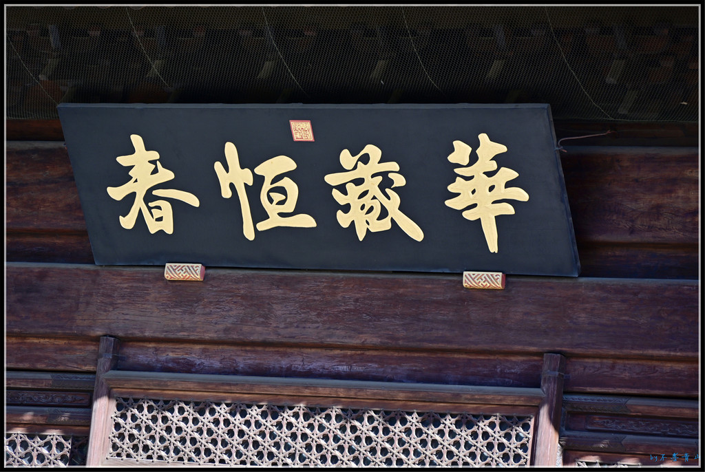 上檐竖匾大慈真如宝殿,下檐横匾华藏恒春。
