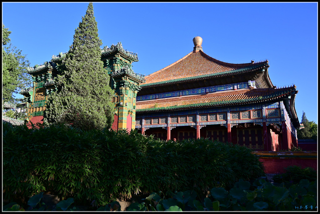 阐福寺在五龙亭之北,始建于乾隆十一年,为太素殿旧址。孝庄皇后死后曾在此祭奠,乾隆尊生母之愿,下令改为喇嘛庙,赐名阐福寺,其规制仿河北正定隆兴寺。