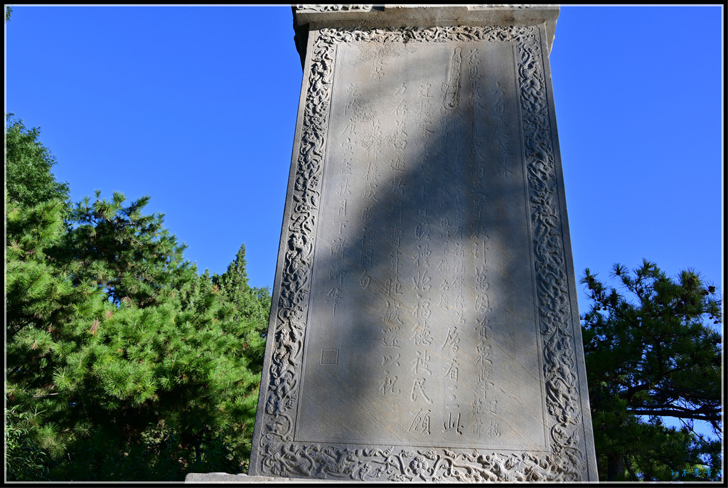 万佛楼石碑位于小西天南侧,是乾隆皇帝于公元1770年为祝贺其母80寿辰而立于万佛楼前,1987年移立于小西天牌楼西面。