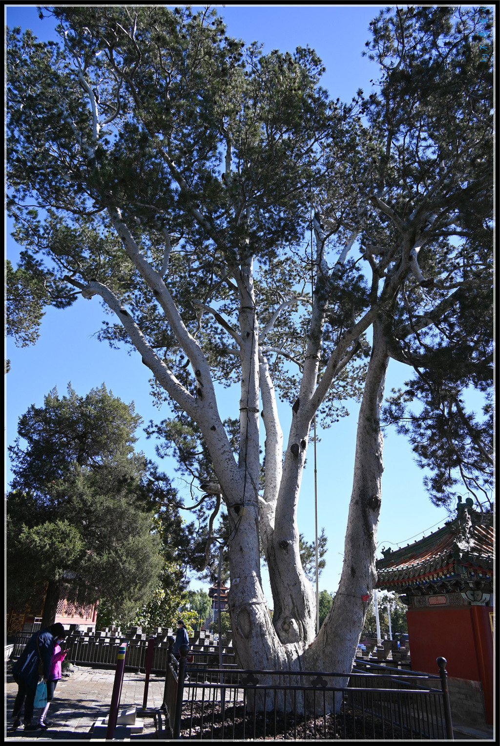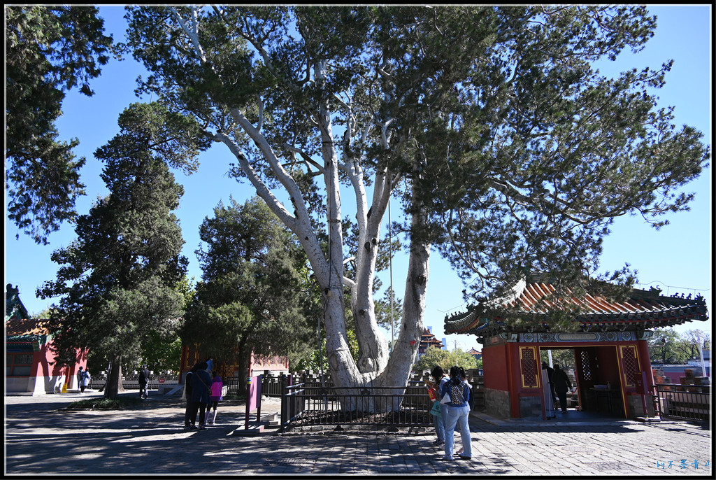 拾级而上,进入城门内,首先看到一大宝贝,一棵高大、茂盛的白皮松,这就是乾隆皇帝御封的“白袍将军”,据称树龄已达800余年。