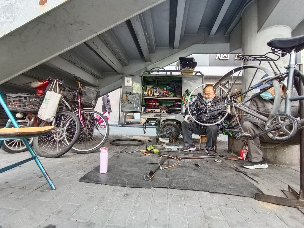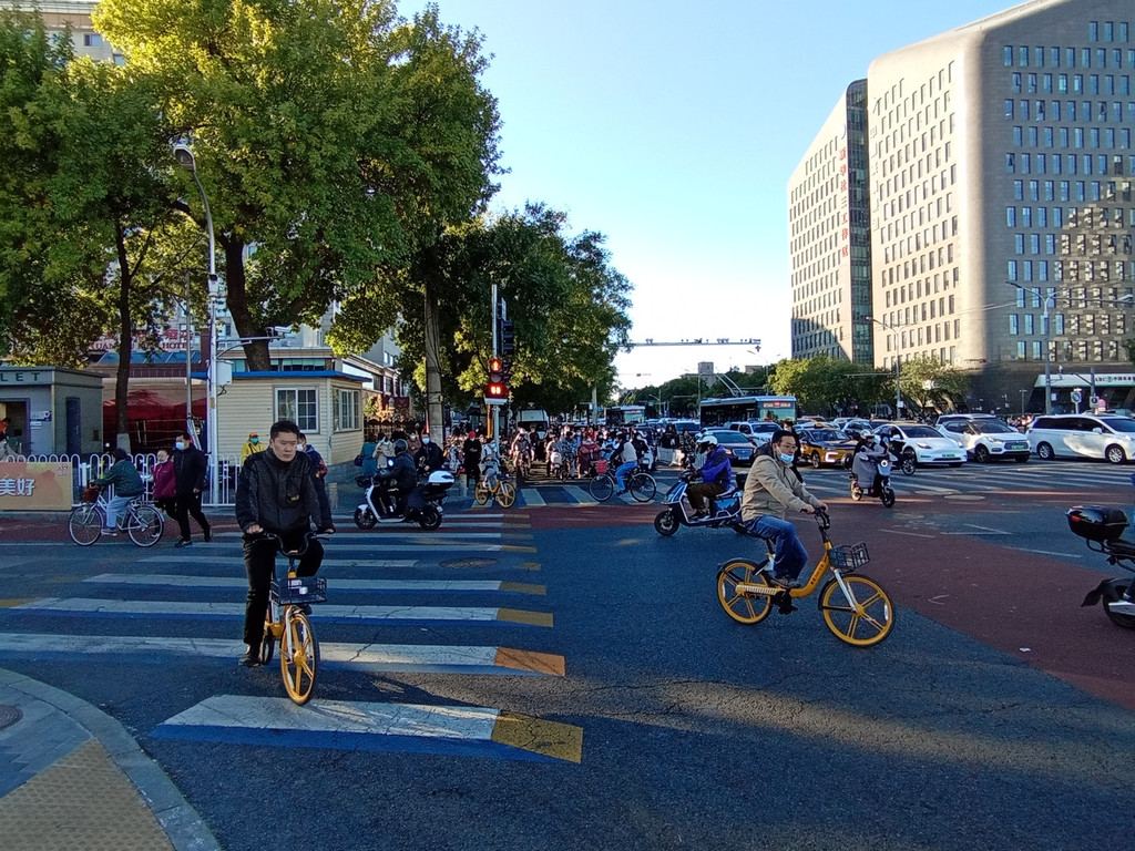 自行车在北京依旧是主角,自行车道宽,且自行车优先。共享单车非常方便,我包月18.8元,骑了一二百公里应该有的。街头巷尾天桥下,依然有修自行车的摊子。