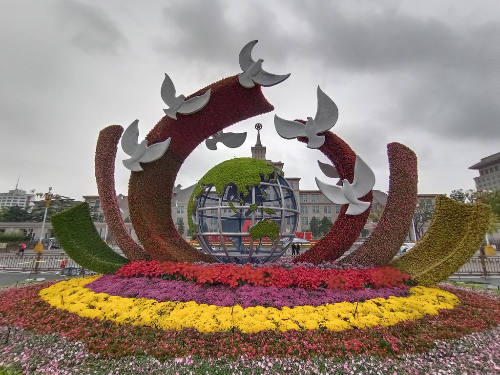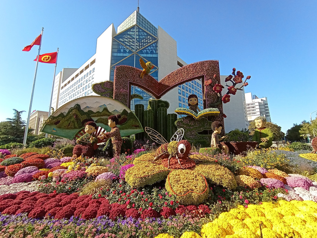 长安街沿线布置了十四个花坛。