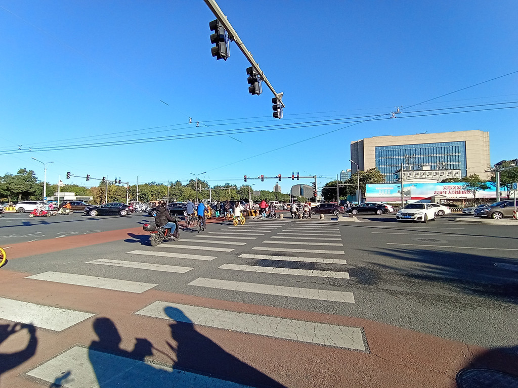 北京人许是生活节奏快吧,一般不等红绿灯,路口无车就直接通过。骑电瓶三轮大多不戴安全帽的。