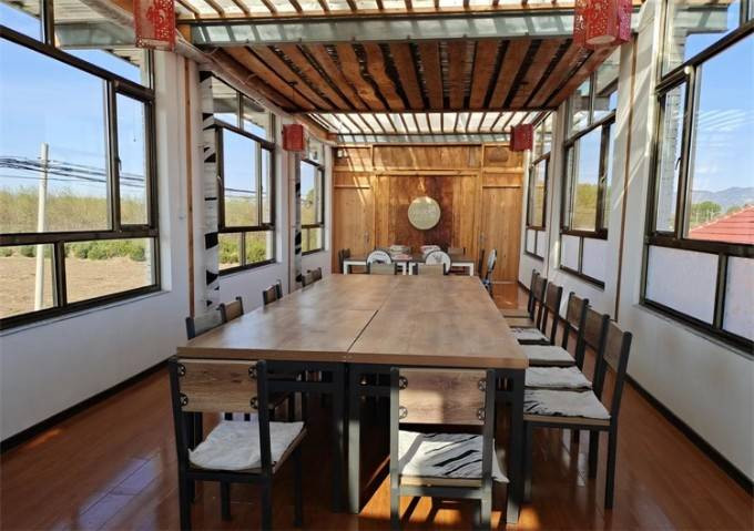 餐饮美食:民宿提供开放式厨房、大冰箱、消毒柜、电磁炉,锅碗瓢盆一应俱全,附近有饭店,可送餐,可提供厨师,民宿有多个大厅可以满足就餐、会议、聚会、娱乐各种不同需求。