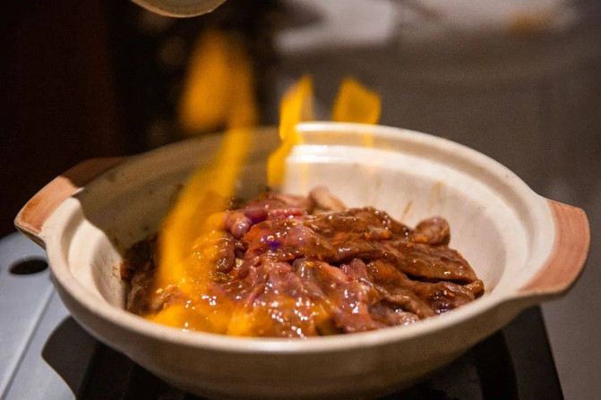 大厨在包间里现场制作啫啫金蒜和牛煲,深切感受到美食所带来的视觉嗅觉和味觉享受。