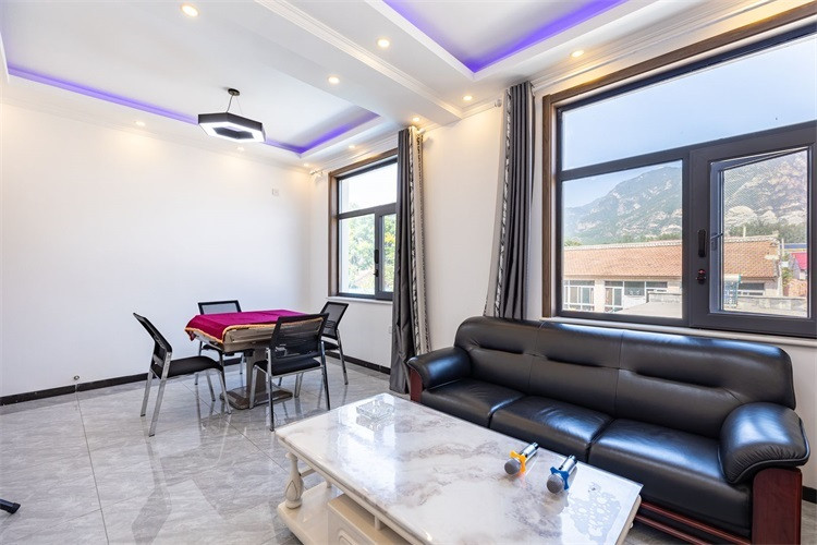 娱乐设施:棋牌室1个,儿童游戏房一间,休闲区1个,配有专业KTV 设备1台,台球桌。75寸电视130个台可连接看电影