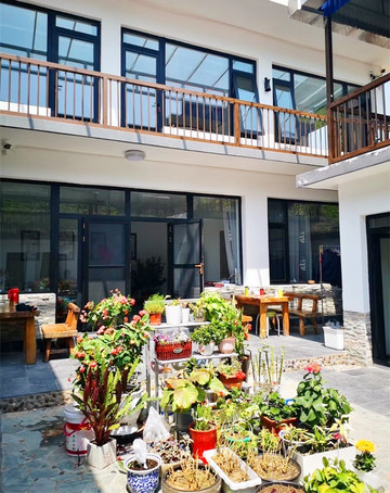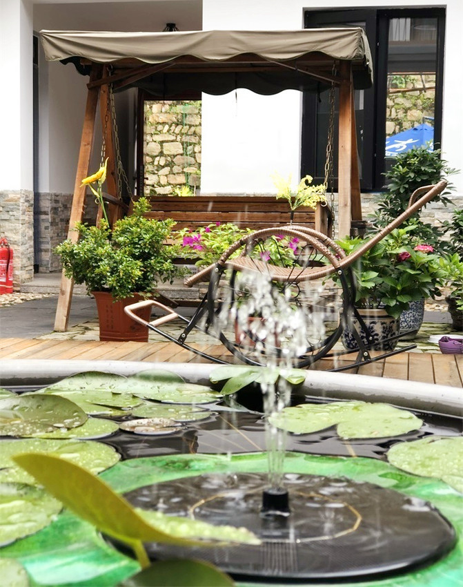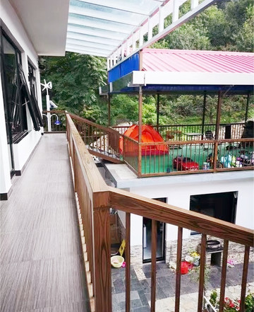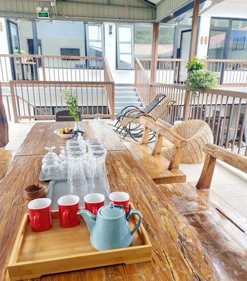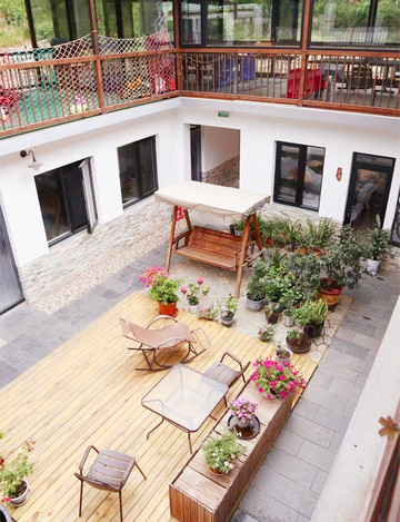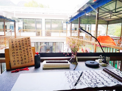 亮点特色:民宿一层有:秋千,摇椅,绿植和公共接待区供游客休息聊天畅谈!二楼上设有宽阔的外露阳台,非常宽阔,可以喝茶,聊天,写作,晒太阳,欣赏周边山景美景。值得一提的是,露台上专门为小朋友们喜爱的多种儿童娱乐设备,如:滑梯,小帐篷,小车,特别适合带娃来玩,大人们可以释放双手啦!这里也是文艺爱好者们的聚集地,主人精心准备了:笔、墨、纸、砚,喜欢书法的朋友可以拿起毛笔任情挥洒,还可以眺望远方的风景,何其美哉!