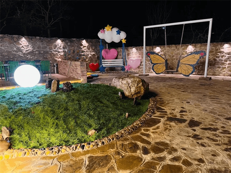 亮点特色:庭院:夜景照明、庭院内有儿童沙坑、滑梯,儿童娱乐设施、锦鲤池、户外全地形车体验、户外设有烧烤区域、配备烧烤架、室内恒温无边泳池、四季恒温、带有水幕和冲浪功能,各类娱乐设施齐全,适合全家老小共同体验,民宿配备多款全地形车可供体验或自驾,在山间自驾体验不一样的驾驶感受,民宿用餐方便,可预定烤全羊。