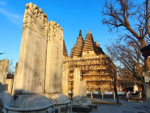 2020年11月24日,记者走进这座庙宇进行了瞻仰,饱览了寺中的文化古迹,深刻感受了一把五塔寺金刚宝座塔的建筑风貌,及寺中石刻艺术文化展的独特魅力。