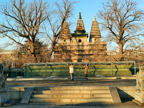 无独有偶,被称为五塔寺的现全国仅存6座:3座在北京,即五塔寺、碧云寺和黄寺各一座;另外3座一在内蒙古呼和浩特;一在云南昆明官渡古镇;一在河北正定广惠寺。