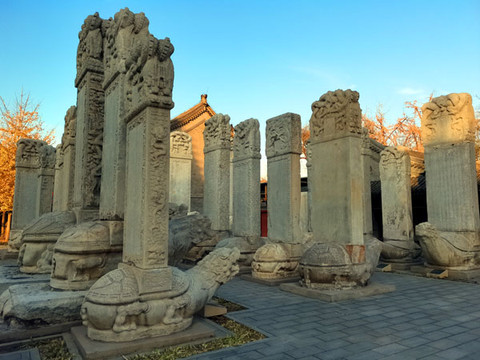 走进这座古刹,相继可以在寺内瞻仰到东西部碑廊、大殿遗址、陵墓石与祠墓碑刻区、金石书院、金石走廊、金刚宝座塔及室内外的石刻展。