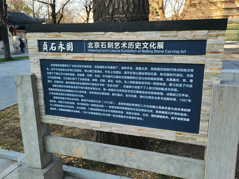 而石刻馆室内厅展出的有“真觉寺资料陈列”、“人与石——石刻简史陈列”、“北京地区石刻、石刻露天陈列”等组成。