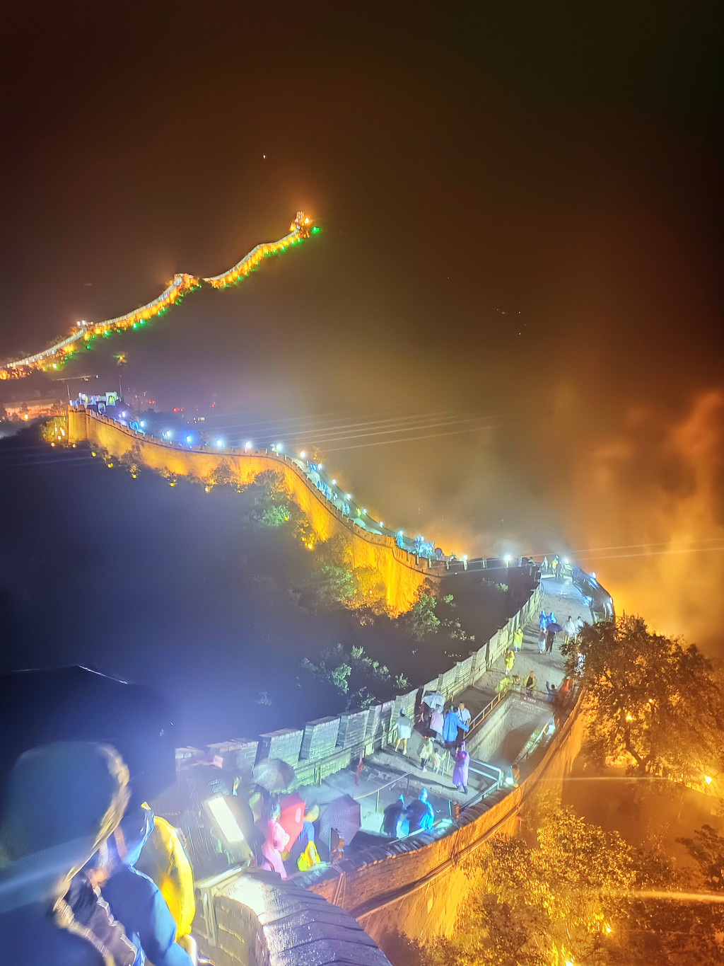 4、晚上长城。因为暑假怕热,选择了报团夜游,有灯光秀。若天气凉爽,还是建议白天去,傍晚时分的长城应该很美。长城球幕影院,100元一人,没有介绍长城的历史,只有一些上天入地的9D感官感受,略觉不值。晚上只有地面缆车上山,100元一人,所以真正爬行的路程不算很长,只有一小段,稍有点陡。在好汉坡前留个念。行程结束时下大雨,出租也打不到,地铁也停了,真是酸爽。