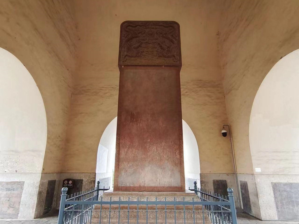 碑亭:建于嘉靖二十一年,重檐歇山顶,四面各设红券门,亭内立有一座造型新颖别致的圣绩碑,称为“龙趺碑”。