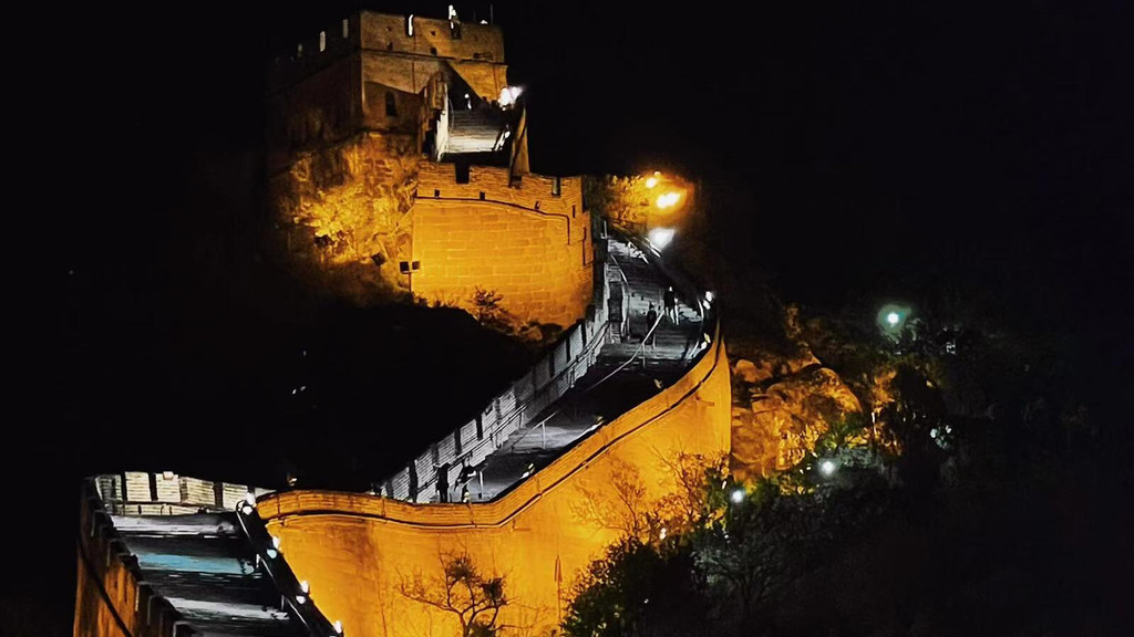 八达岭长城在白天以其古朴典雅的风貌吸引着游客,而夜幕降临之际,古老的长城在灯光的点缀下焕发出全新的风采。随着夕阳落下,长城逐渐融入夜色,那份宁静与神秘,也为夜游的游客带来别样的感受。