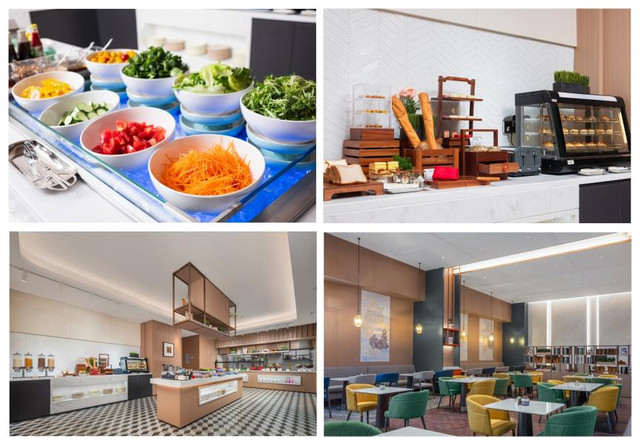 酒店的早餐我觉得也是一大特色,品类丰富的中西式自助餐满足了不同口味的需求。从香醇的咖啡、清新的绿茶,到新鲜的果汁和牛奶;从中式早餐的包子油条到各式面包、西式糕点以及多种口味的麦片;从煮蛋、煎蛋到培根、香肠;还有各种时令水果……元气满满的一天从丰富的早餐开始。