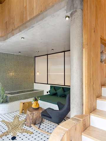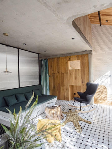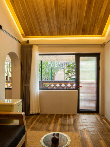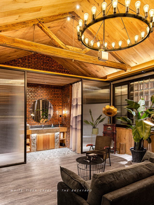 院子在白虎涧山下,四周群山环抱,风景优美。院子设计呈现出原始生态风格,保留建筑原始状态进行室内改造,极力打造出一个可以让都市灵魂可以静下来的生活空间。