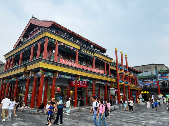 今天主要游览了天坛公园、北京大观园、正阳门、前门大街、大栅栏街区、永定门等景区景点,晚上还专门到了酒店附近的王府井大街,观赏这里的夜景。小朋友很喜欢《红楼梦》,所以一说来北京,就心心念念想去逛逛北京大观园。今天就满足小朋友的心愿,挤出点时间到北京大观园走走看看。永定门是北京新晋世界遗产“中轴线”的组成部分,也专程前去看了一下。