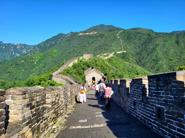 慕田峪长城在北京近郊,距离住宿的酒店有约60公里,如果乘坐专线车或选择其它公共交通工具需花费很多时间,一天时间里也只能玩这么一个景点。为了有效利用有限的时间,今天特意定了一辆包车,早上起了个大早,6点半就从酒店出发,在路途中顺便吃了个早餐,到达慕田峪长城才8点多,这时景区游人还很少,不用排队就直接上了缆车,真的好极了。中午出了景区坐上车子在马路边的饭店吃过午饭,便来到国家图书馆参观,然后车子又把我们送到了颐和园(包车到此为止),一直在园里逛到傍晚的时分才离开,乘坐地铁返回酒店。这样子今天早出晚归,充分利用时间,在北京又度过了紧凑充实、富有成效的一天。
